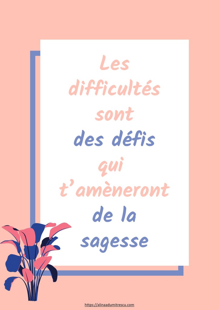 Les difficultés sont des défis qui t’amenèront de la sagesse.